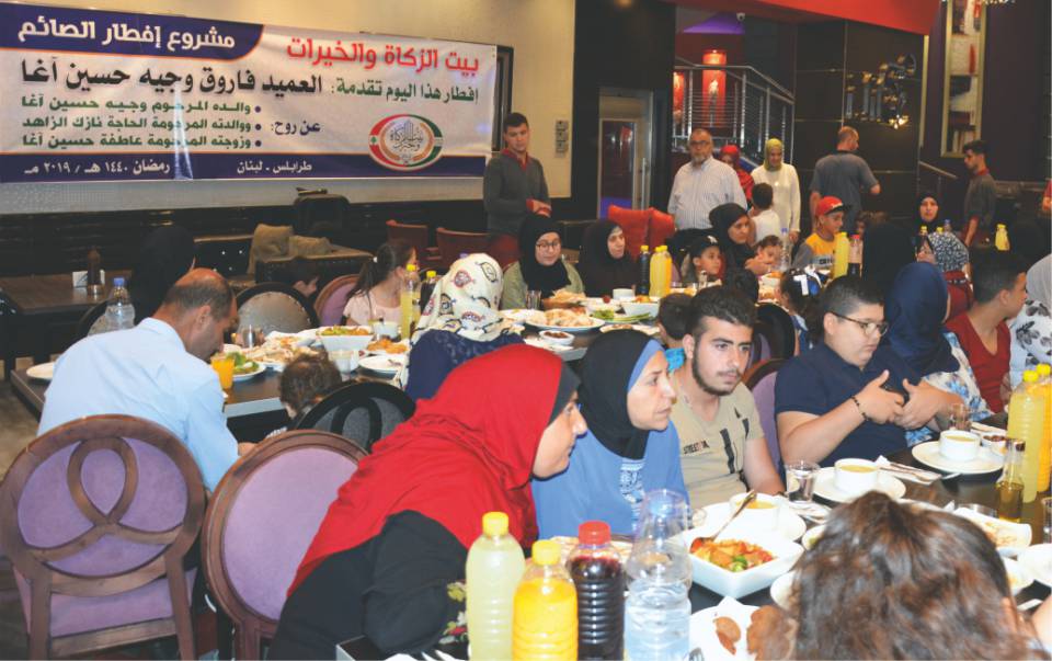 أقام بيت الزكاة والخيرات إفطاراً لمئات الأيتام وأسرهم والأسر المتعففة تقدمة العميد فاروق وجيه حسين آغا عن روح والده ووالدته وزوجته في مطعم الأي لايك .